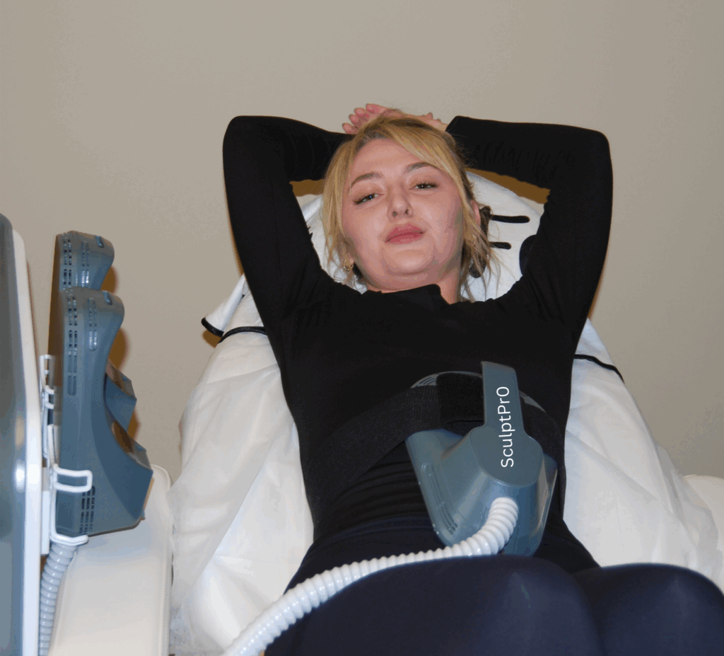 Bodysculpt uses non-invasive Magnetic Precision Muscle Activation (MPMA) -multivector magnetic induction for deep controlled muscle activation, it simultaneously eliminates fat cells and promotes muscle growth.